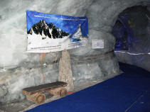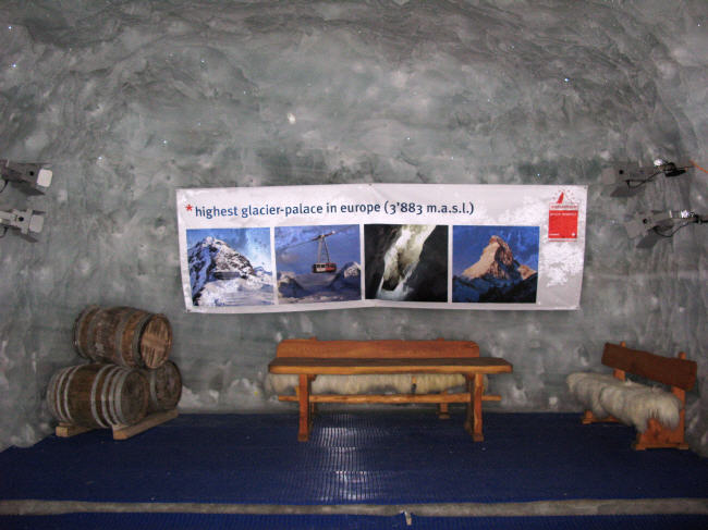 Vom Restaurant aus geht es mittels Personenaufzug in den Gletscher-Palast. Danach gelangt man durch einen Eistunnel direkt in den Gletscher-Palast. Dieser befindet sich ca. 15 m unter der Gletscheroberfläche. Hier können auf gesicherten Wegen Gletscherspalten und Eisskulpturen besichtigt werden.